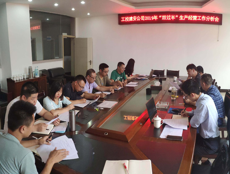 6月24日下午,工投建安公司董事長(zhǎng)石清華主持召開2019年“雙過半”生產(chǎn)經(jīng)營(yíng)工作分析會(huì),簡(jiǎn)要分析了當(dāng)前完成目標(biāo)情況和存在的問題。要求對(duì)主要管控項(xiàng)目形成統(tǒng)一的管控制度,強(qiáng)化風(fēng)控能力。并對(duì)下半年的工作進(jìn)行部署,提出要主動(dòng)作為,主動(dòng)管理,加快進(jìn)度,全力以赴,做到公司承建項(xiàng)目各關(guān)鍵節(jié)點(diǎn)在預(yù)計(jì)時(shí)間內(nèi)完成,確保公司全年經(jīng)營(yíng)目標(biāo)的完成。