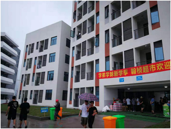 開學前夕,新的學生宿舍已投入使用,迎接新生的到來。此次投入使用的3棟宿舍樓均為6層建筑,建筑面積約15400平方米,共有四人間宿舍330間,可供1300名學生住宿,為方便殘疾學生入住,特設(shè)4間殘疾人專用宿舍。